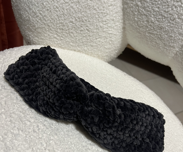 Bandeau en crochet chaud Améthyste torsadé - gris chenille