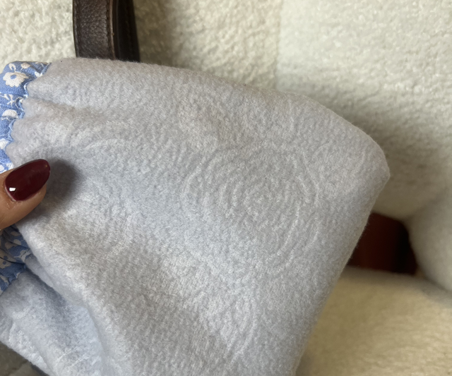 • Doublure moelleuse chinée de seconde main (super fluffy !) : c’était un peignoir 😱
