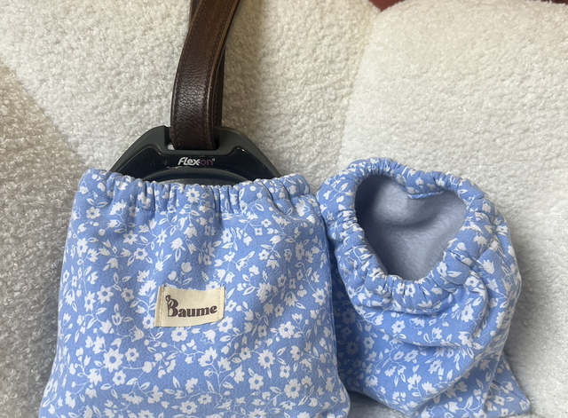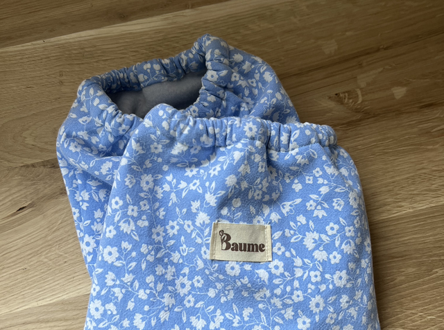 Ces housses d’étriers sont cousues à partir d’un drap fleuri bleu pour offrir une seconde vie à des cotons de qualité ♻️